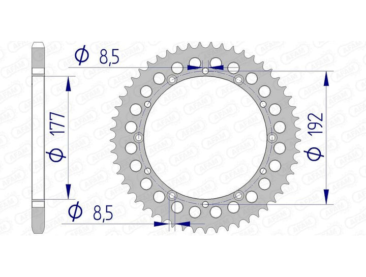Afam aluminum crown gears are made of an alloy that is both light and tough. The Quality of Machining and the Precision of the Cutting Make AFM A Worldwide Standard Settes for Motorcycle Transmission Parts. Racing Aluminum Crown Gear Ultra-Light with Hard Anodizationreinforced Resistance to free and wearrange-topping Finish and Qualityessential for Competitive Riding Chain_pitch: 520.0 Material: Aluminum Rear_Procet_Teetth_Teet: 53.0 REAR_PROET_SSION: Ultra-Light Hard Anodized