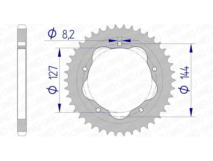 AFAM aluminum rear Sprock 51608 - 525 - Requires an AFAM REAR SPROPET Carrier 51608-38