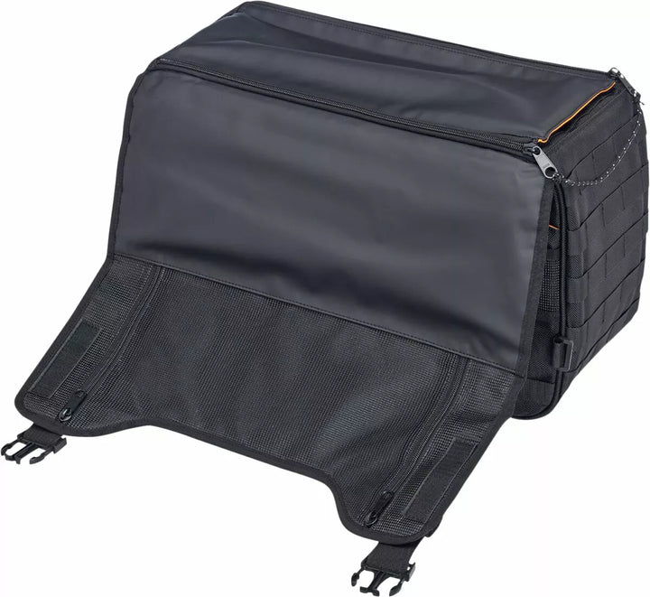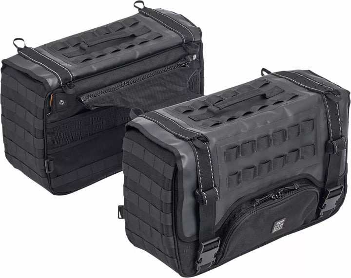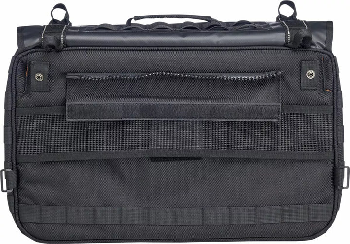 Engineered for Easy Installation and Universal Fit On A Wide Range of Motorcycles, UV Treated 1680-Denier Ballistic Nylon Exterior Resists Moisture and Fading, Strong, Flexible Eva Foam Panels Inside Main Compartment ADD Structure and Durability Compartment Closes With 1.5-Inch Wide (36mm) Reflective Polyester Straps and Duraflex Quick-Rease Buckles, Extra-Large 15 ”Long X 7” Wide PVC-Treated Main Compartment Door Features Double Zippers With Single System on And Extra Gear, Two-Piece Mounting Yoke With Adjustable Hook and Loop Panel Fastens To Both Bags With Heavy-Duty Nylon Zippers, Bag Bottoms Reinforced With Heat Resistant, Heavyweight Canvas Panels, Main Compartments Features Three Elastic Strap Main Compartment to Secure Rolled Clothing, Fuel Bottle, or Other Gear, Mesh Document Pocket with Two Zippers Inside Waterproof Security Flap, High-Vis Orange Interior Lining Makes Spotting Contents Easier, Hidden Cable COM COM COM COM COME COM COM COME COM COM COME COM COM COME COM COME COM COME COM COME COM COME COME COM COME COM COME COME COME COME COME COME COME COME COME 15.25 "Wide x 7.25" Deep (388mm x 184mm) Exterior Pocket Beneath Security Flap for Documents and Small Essentials, 9 ”Wide x 4.5” Tall (240mm x 114mm) Clamshell Pocket with Double Zipper Pull Pull Pull Pulls Pulls Pull The Main Compartment, Double-side straps included for Securing Bag to Appropriate Mounting Points on Motorcycle, Universal Fit Works With A Variety of Aftermarket Saddlebag Support, Multiple D-Rings, Molle Points, and High-Strength Nylon Nylon Nylon Cords, Hand-sewn Seams with high-strength polyester Thread, Waterproof Nylon Rain Covers with Elastic Gathers and Drawstring Closure Provide Extra Protection In Extreme Conditions