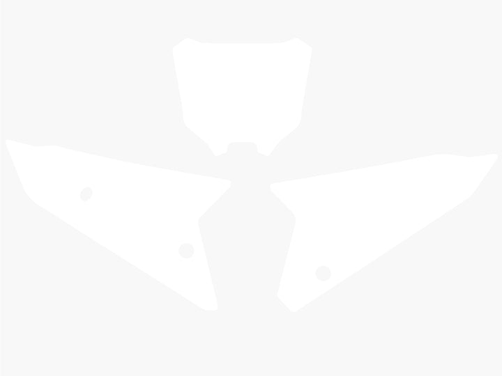 Set of Plates Stickers: 1 Front Plate Sticks + 2 Side Plate Stickers0.4mm Thick Stickers-Thickness Special Designed for Off-Road Useanti-UV Treatment and Solvent Resistant Back Printed for Maximum Life LastingDelivered Without Racing Numbers Color: White
