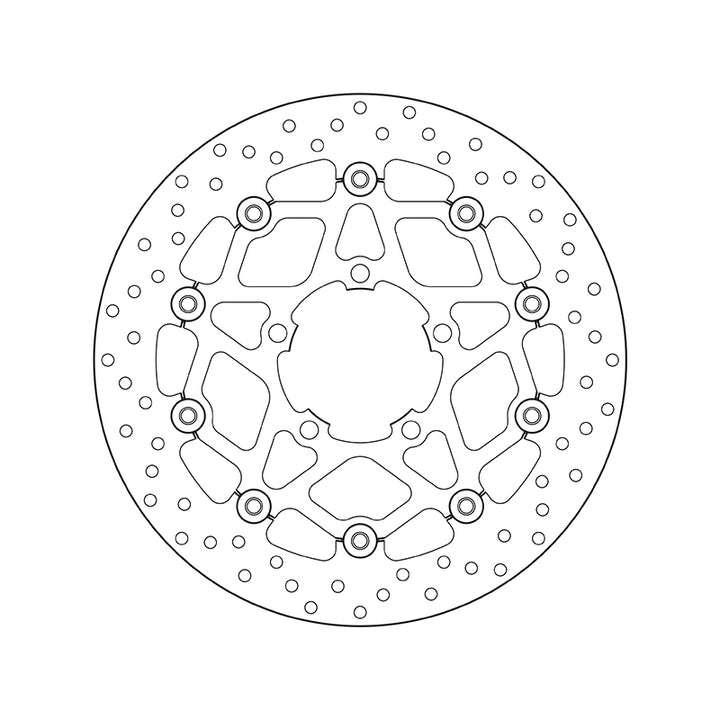 Brembo Serie Oro brake discs represent the best that the market has to offer, with a range of products boasting superlative technical content and quality. Available in both fixed and floating versions, these discs are fully interchangeable with original production discs. Floating discFloating discs are made from only the highest quality materials available to deliver unparalleled performance These consist of a braking rotor in stainless steel, connected by 10 fastener screws to an anodised aluminium alloy hat. Higher braking power Quality and performance guaranteed Efficient in all weather conditions: heat, rain, cold… Brake Disc Shape: Round Disc Type: Floating Hole Diameter (mm): ø 10.5 Inner Diameter: ø 82.3 Number of Holes: 5.0 Outer Diameter: ø 310 Thickness (mm): 4.5 mm