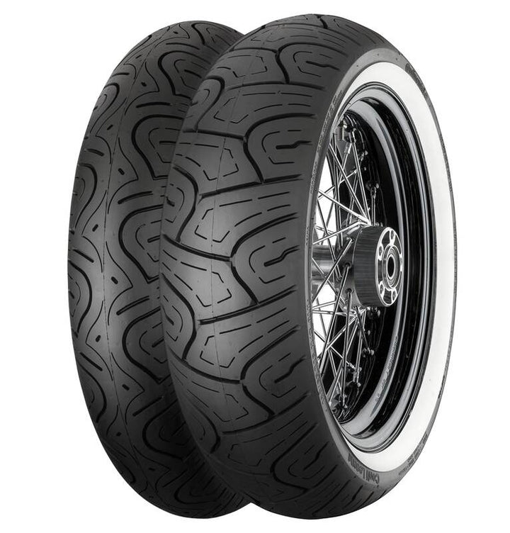 Classic Custom Whitewall Tire for Cruisers and Heavy Touring Bikes. Unique Pattern Design with Whitewalls to Support The Classic Look of Touring Bikespecially for Heavy Touring Bikes, Cruisers and Harleys® Engineered Carcass Construction for Easy Hand While mainaining exceptional action multi grooved patern for optimal drainage consistent performance during tire lifetime aspect_ratio: 70.0 markings: Whitewall Position: Front Rim_diameter: 18 Speed_index: H <210 km/h Tire_catedors Scooter Tire Tire_Load_index: 63.0 Tire_pattern: Contilegend Tire_structure: X -Ply Tire_width: 130 Tubeless_or_tubbeTEK: TL - TUBLESS