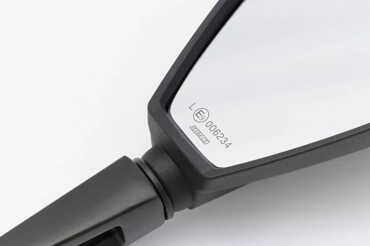 ECE-Approved., Material Mirror Head: ABS, Material Mirror Arm: Aluminum, One Black Mirror for the Right/Left Side to Mount At The Handle/Fairing