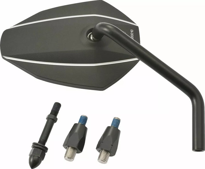 E-marked, Material Mirror Head: Aluminum With CNC Surface, Adapter M10 X P1.25 (R/H Thread) and Harley Included, Material Mirror Arm: Steel/Aluminum, CNC Aluminum Body