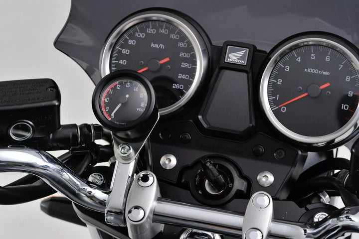 High Quality Analog Velona48 Voltmeter for Monitoring The Battery Voltage of the Motorcycle, Stepper Motor with precise volts Display, voltmeter range: 8.0 - 16.0V, Battery Warning: Low voltage Alert by Red Led Led Led LEDs Less Stee 12v V-shaped bracket