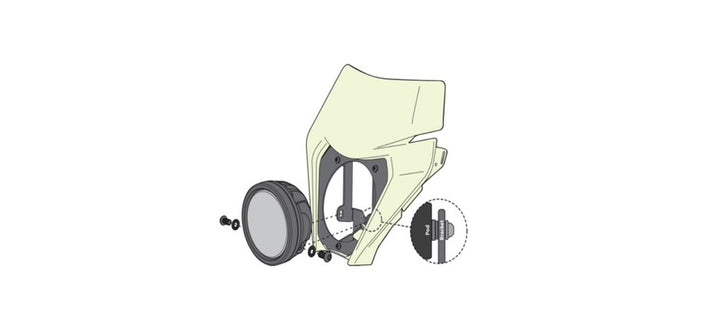 This bracket is specifically designed to enable the mounting and wiring of DENALI's powerful LED headlights on Husqvarna Rally models. A stable and precisely fitting solution for those who want to upgrade their lighting with style and safety.