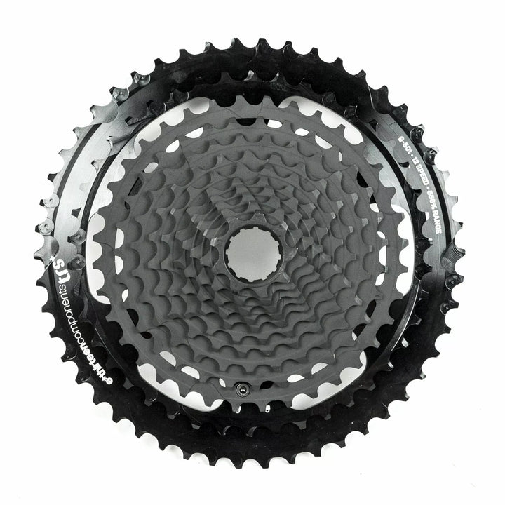More Range, Less Weight, and Less Money. Need We Say More?, TRS Plus 12 Speed Cassettes Have Class-Leading Range, And Plug Directly Into Sram ル Eagle ル Mechanical* and Shimano ル XTR ル, XT ル, and slx ル 12 Speed drivetrains. Chainring for Better Ground Clearance and Additional Weight Savings., If You're Planning On Building Up Your New Bike With A 12 Speed Drivetrain or Your Existing Setup Is Running Rough, Consider Saving Some Money and Weight With E*Thirte's TRS TRS PLUS TRS PLUSS PLUSS Owners: Please notify us if you will be installing the cassette on a hope ル xD drive, as hope ル XD DRIVERS do not adhere to licensed xD specification and require an additional shim which we will include with your order. Eagle Axs was available in the market, so TRS+ Cassettes May Present Setup Problems In Some Cases. For Best Results We Recommend Helix 12s Cassettes For Use With Eagle Axs Drivetrain!, Compatibility: Sram ル Eagle ル and Shimano ル XTR ル, XT ル, SLX ル 12 Speed Drivetrains., Mounts to an XD ル Driver with a 3M p. Removes Simply with a Chainwhip and Cassette Tool., Freehub Mount: XD ル and xdrivers only., Range: 9-46T: 511%., Speeds: 12 Speed. , Weight: 9-46T, 332 g.
