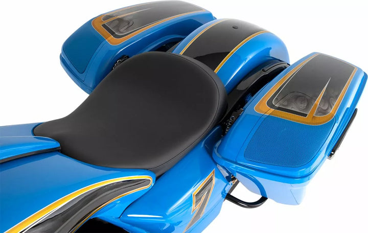 Kit includes high-impact abs replacement Saddlebag Lids, Lid Tethers, Grills, Grommets, Wire Harness and Required Hardware, Disassembles Easily for Paint, Accepts Oem and Aftermarket Latches, Required Amplifier and Option Spees.
