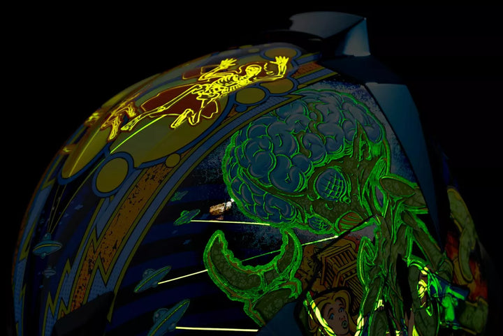 Injection-Molded Polycarbonate Shell for Strength and Durability, Intermediate Headform, FAG-FREE FLITESHIELD ™ and Internal Dropshield ™ give you a clear view of the street in any kind of light Fliteshield ™ Included, Dark Smoke Internal Dropshield ™, Moisture-Wicking Hydradry ™ Removable Comfort Liner, Includes RST BLUE SPOILER, GLOW-INT THE-DARK, Multiple Oversized Intake and Exhaust Ports, Fog-Free, Fog-Free FAG-FREE FLITESHIELD ™ with Sideplates, Removable Molded Breath Deflector and Chin Curtain, recessed Twin Channel Supervent Cooling System, The Dropshield ™ Visor Must Only Be Used While The Main Face Shield Is in the fully closed position R.A.U. Bluetooth Device