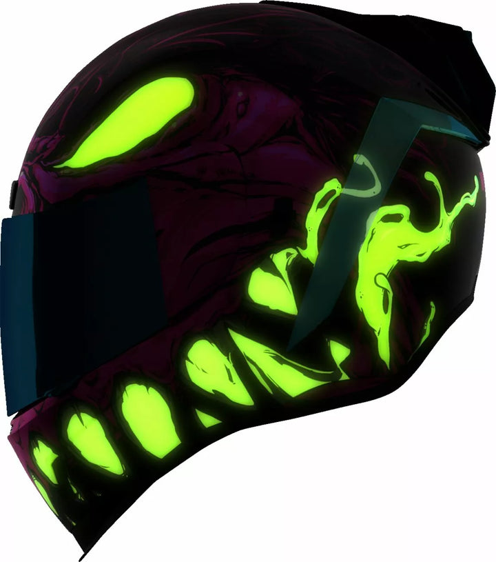 Continuous Venting System, FAG-FREE ICON OPTICS ™ Shield with Rapid-release ™ System, Injection Molded Polycarbonate Shell for Strength, Internal Airflow Geometry, Sculpted NECK Roll, Prolock ™ Switsch, the EXTERIOR WITH LOCKING SHIVING SWEQU Visor must only be used while the main face shield is in the fully closed position, removable Molded Breath Deflector, Removable Hydradry ™ 3-Piece Moisture Wicking Liner, Internal Speaker Pockets Work With Icon's R.A.U. Bluetooth Device, Includes Dark Smoke Dropshield ™ and Rubatone Black Speedfin ™