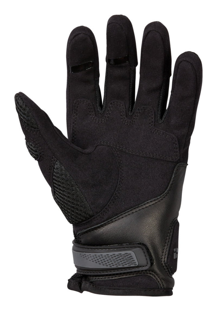 Palms/fingers made of stretch in 82% polyester, 18% elastane