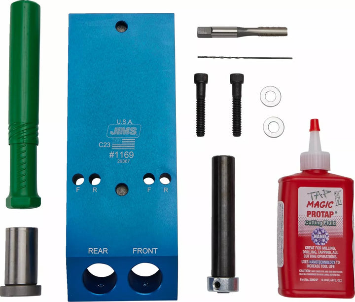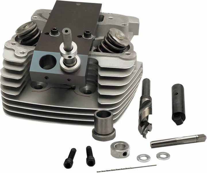 Installation Kit Includes Fixte, Drill Bit, Spot Face Bit and Thread-Tapping Tool, Simply Drill, Spot Face, Tap and Install Compression Release Valves, Works On Front and Back Head, With Or Without Valves Installed, For Big-Inch Or High Compression Twin Cams