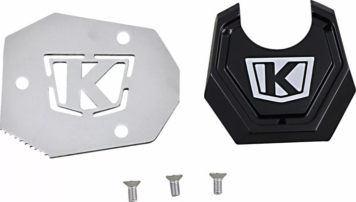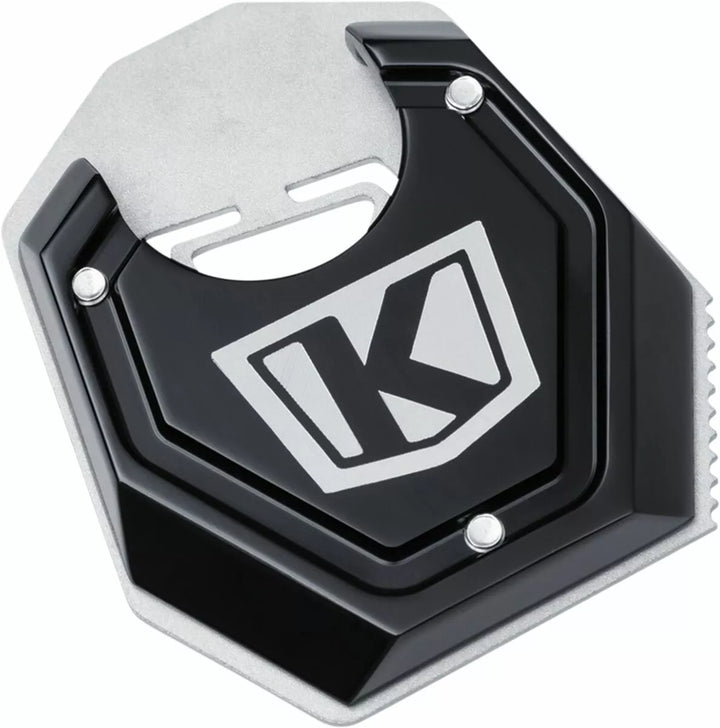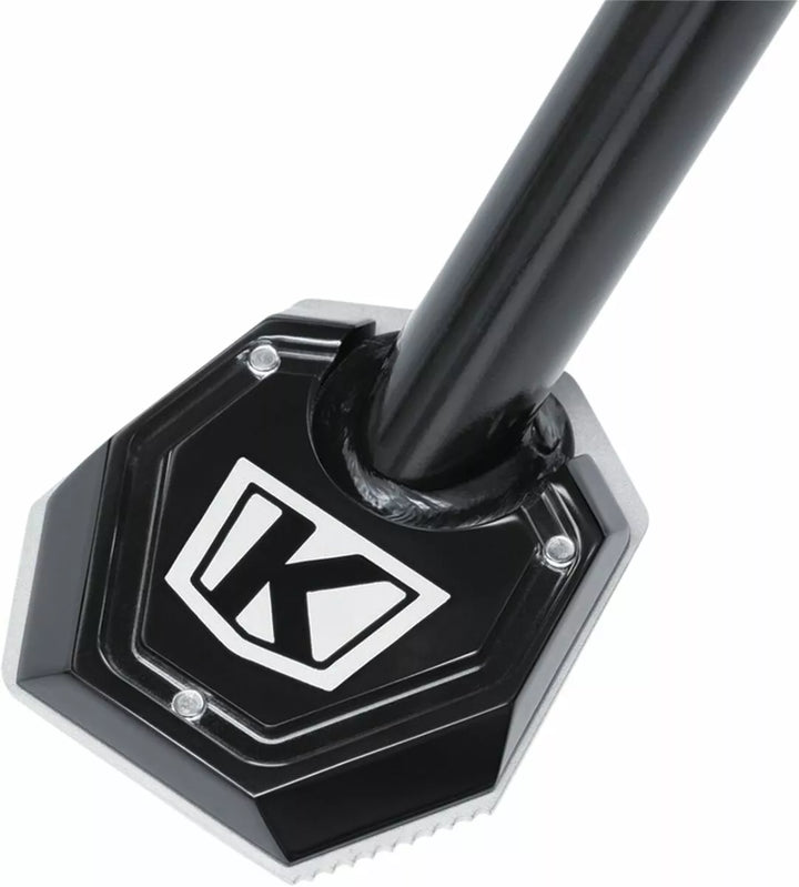 Provides Additional Surface Area to Keep Kickstand From Sinking Into Soft Surfaces, CNC Machined 6061-T6 Aluminum Top with Laser-Cut Stainless Steel Bottom Plate, Outer Edge Edge Can Be Utilizer to Breide on Flids on Fltr. The Bottom Plate Ads Traction to Help Deploy Kickstand in Wet or Muddy Conditions, Includes Three M5 Screws