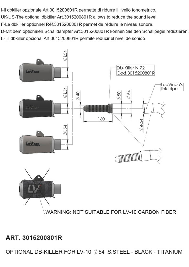 Leovince Replacement Parts, The Optional DB Killer Allows to Reduce the Sound Level.