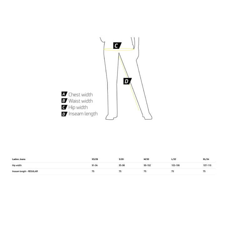 Lining: Dupont Kevlar reinforcement at the hips, knees, and back.