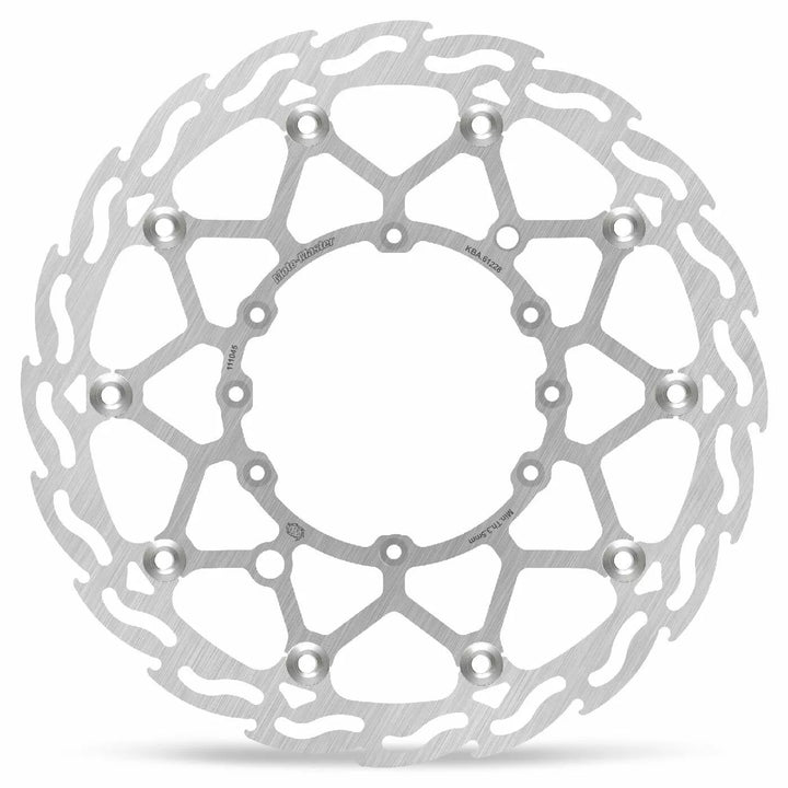 , Designed for Use With Stock Brake Calipers, Supermoto Street Discs Are 4 mm Thick and Utilize A 320 mm Floating Design, Like The Flame Design Outer Ring, The Inner Carrier Is In Premium Quality Stainless Steel, Mounted With 10 Stainless Steel Floaters