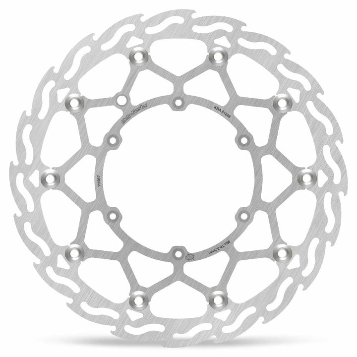 Bolt-on Performance Upgrade, Flame Design Ensures Optimal Heat Dissipation and a Perfect Cleaning of the Brake Pad Surface, Durable, Premium Quality Stainless Steel Outer Ring, Mounted with Lightweight Stainless Floaters, Electricity Rider Double-Gegrund Liver, Equal Brake Pad Contact Throughout Entire Rotation of Disc Ensures Linear Braking Action, CNC-Machined 6082 Billet Aluminum, Black Anodized Carrier is Lightweight and Strong, Can Be Used With Any Type of Brake Pad, Also Avaable in