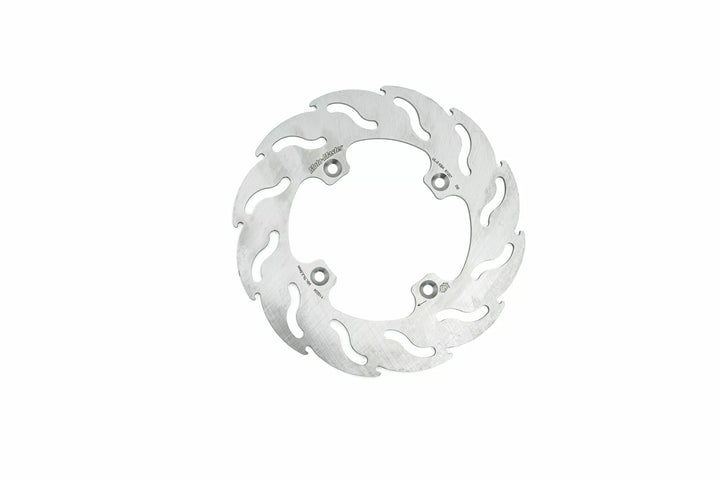 Flame Shaped Valenting Slots And Outer Perimeter Ensure An Equal Amount of Contact Surface Between The Brake Pad and Disc Throughout The Who Rotation of the Disc., Smooth and More Predictable BRAKING ACTION WHICH ALLOWS YOU TO BRAKE HARDER. Double-grinded for Perfect Fitment and Flatness, for Best Performance We Recommend Using Moto-Master Brake Pads with the Matching Pad Compound That Best Suits Your Type of Riding.