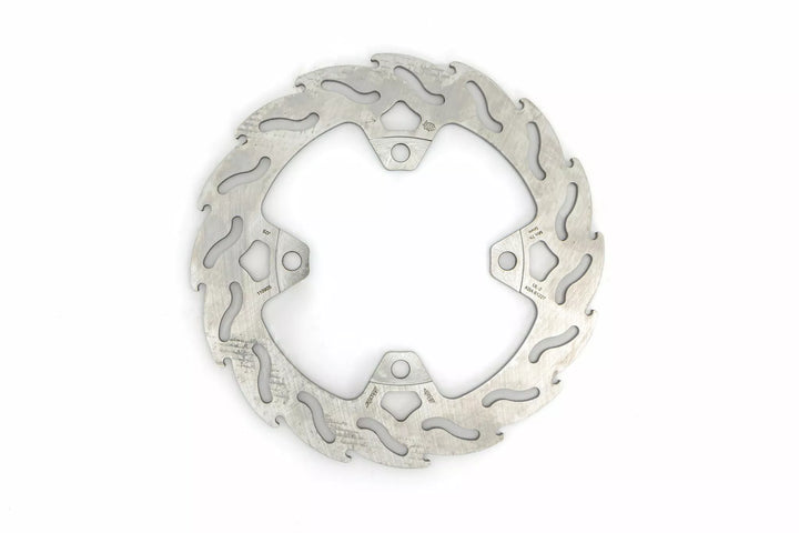 Flame Shaped Valenting Slots And Outer Perimeter Ensure An Equal Amount of Contact Surface Between The Brake Pad and Disc Throughout The Who Rotation of the Disc., Smooth and More Predictable BRAKING ACTION WHICH ALLOWS YOU TO BRAKE HARDER. Double-grinded for Perfect Fitment and Flatness, for Best Performance We Recommend Using Moto-Master Brake Pads with the Matching Pad Compound That Best Suits Your Type of Riding.