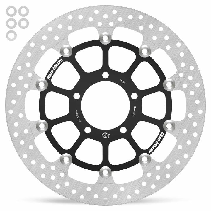 A New Standard in Aftermarket Circular Round Brake Rotors, Durable, Premium Quality Stainless Steel Outer Ring is Laser-Cut and Precision-Gound, Carrier is Crafted From CNC-Machined Billet Aircraft Aluminum, Black Anodized and Laser Manded Dispersion, Even under High Thermal Stress, While The Brake Pad Contact Surface Stays Clean, Lightweight Stainless Steel Floaters Complete The Package