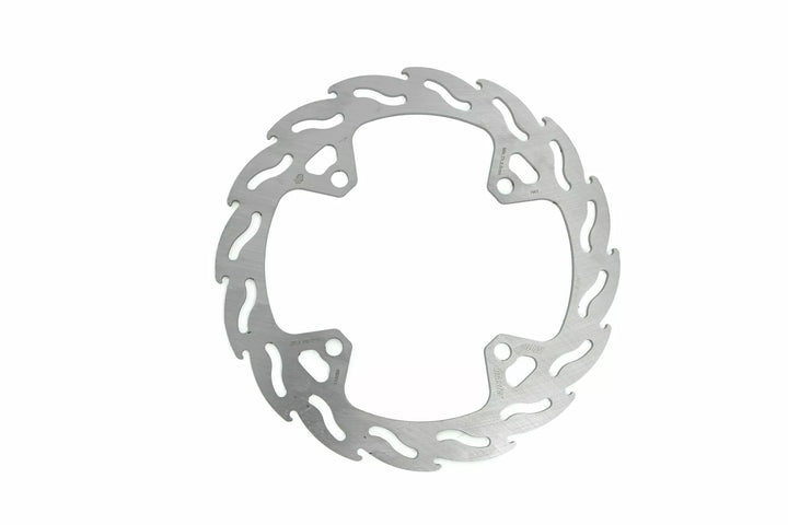 Flame Shaped Valenting Slots And Outer Perimeter Ensure An Equal Amount of Contact Surface Between The Brake Pad and Disc Throughout The Who Rotation of the Disc., Smooth and More Predictable BRAKING ACTION WHICH ALLOWS YOU TO BRAKE HARDER. Double-grinded for Perfect Fitment and Flatness, for Best Performance We Recommend Using Moto-Master Brake Pads with the Matching Pad Compound That Best Suits Your Type of Riding.