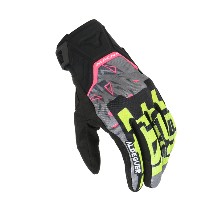 Motorcycle GLOVES MACNA, RECON 2.0 ALDEGUER BLACK/FLUO YLOW/GREY/PINK