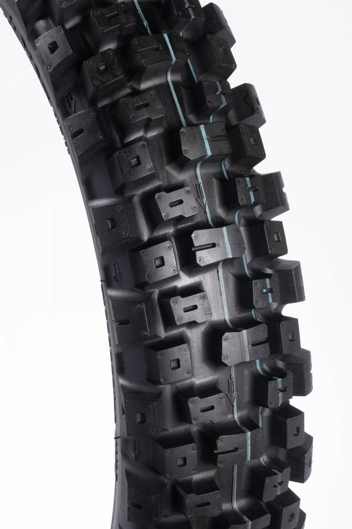The Latest Addition to the Motoz MX Tyre Range is the Terrapactor MXI (MX Intermediate) Competition Tyre. Engineered with a Lightweight Carcass and Designed to Excel in Intermediate to Hard Terrain (Mix of Loose and Packed Soil, Hard Packed Soil and Deep Heavy Ruts). The Benchmark for MX Tyre Performance Across Multiple Types of Terrain!, The MXI Tyre Stands Out With Its Distinctive Pattern, specifically Crafted to Deliver Top Performance. By strategically Incorporating Flex Points Within The Carcass and Knobs, The Mxi Tyre Provides Predictability and Enhanced Corner Grip, Adapting and Flexing According to the Terrain to Give Greater Control and Confidence While Riding. Hard Packed Soil and Deep Heavy Ruts), Full Range from Mini-Cross to Big Bikes (15 Different Sizes), Two Front Tyre Sizes, 80/100-21 For the Most Aggressive On Track Performance and the All-New 90/100-21 With a Taller Profile for Increased Conditions, Unique Flex Zones Built Into Carcass and Knobs For Improved Feel and Compliance, Flex Zones Incorporated Into All Treat Rows to Improve Corning Feel and Drive, All New Inner Sidewall Construction for Improved Compliance
