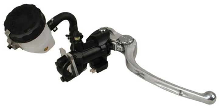 It has one black body in forged aluminum (Forgé) too high strength and low weight, combined with one Silver colored handle Which creates a nice contrast. Comes complete with External brake reservoir, Stolate clip and Brake contact - Ready to be installed immediately.