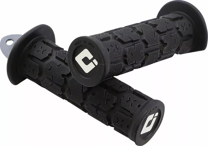 Chunky, oversized grip provides extra shock absorption and improved control, larger grip diameter delivers extra padding, rugged surface patter for better traction, extra-large raised pads provide shock absorption with deep grooves to channel 1st passpan and debris, Full-Wrap Hand Guards, Preinstalled ODI V2.1 Lock-Jaw Clamps With Screws, Patented Lock-On Grip System ™ Design Delivers Easy Installation and Ensures 100% Slip Free Performance