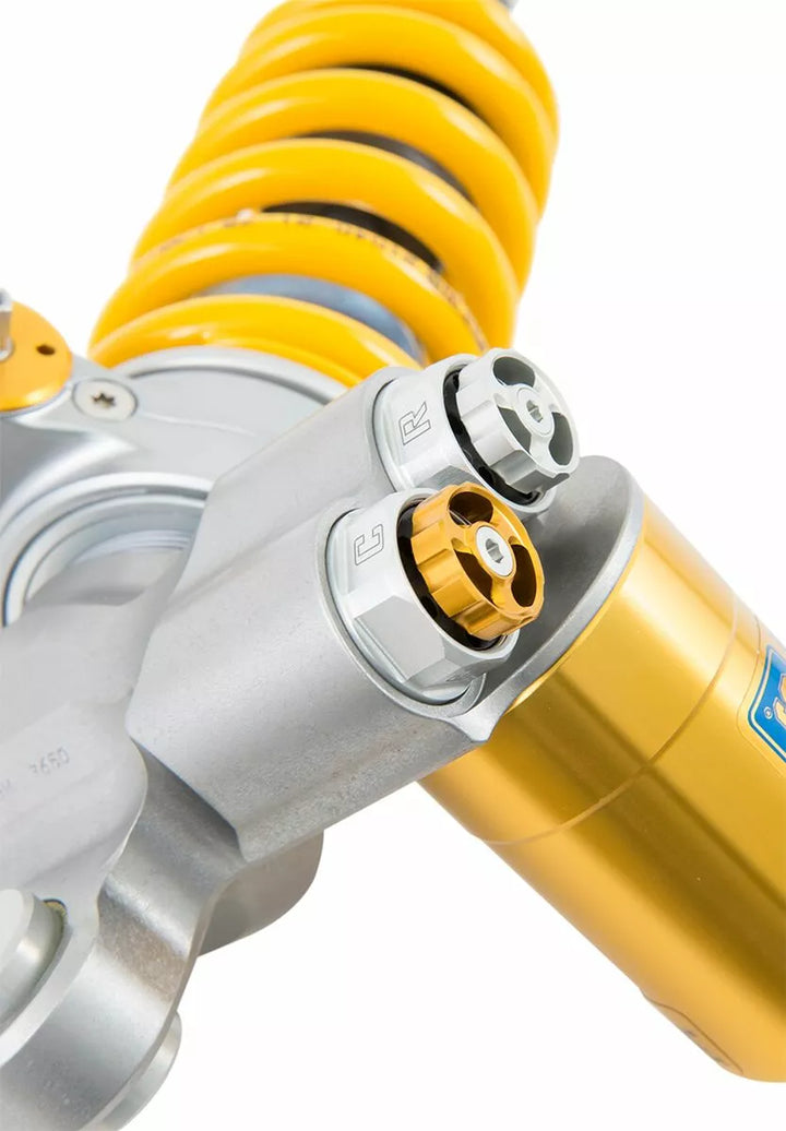 �hlins Twin-Tube Shock Technology, Features Needle Profiles for Compression and Rebound Adjusters, Updated Design Results in Improved Oil Flow Guidance and Volume Control for More Precise, Consistent Damping and Better Fine-Tuning, Availoable Range of PRELOAD are completely separated within the shock with no risk of cavitation, completely separate compression and rebound settings, 36 mm shock primary piston redesigned for improved performance for better traction and feel, Industry Standard of Minimized Chassis Feck-Shock Variance, Improv Control