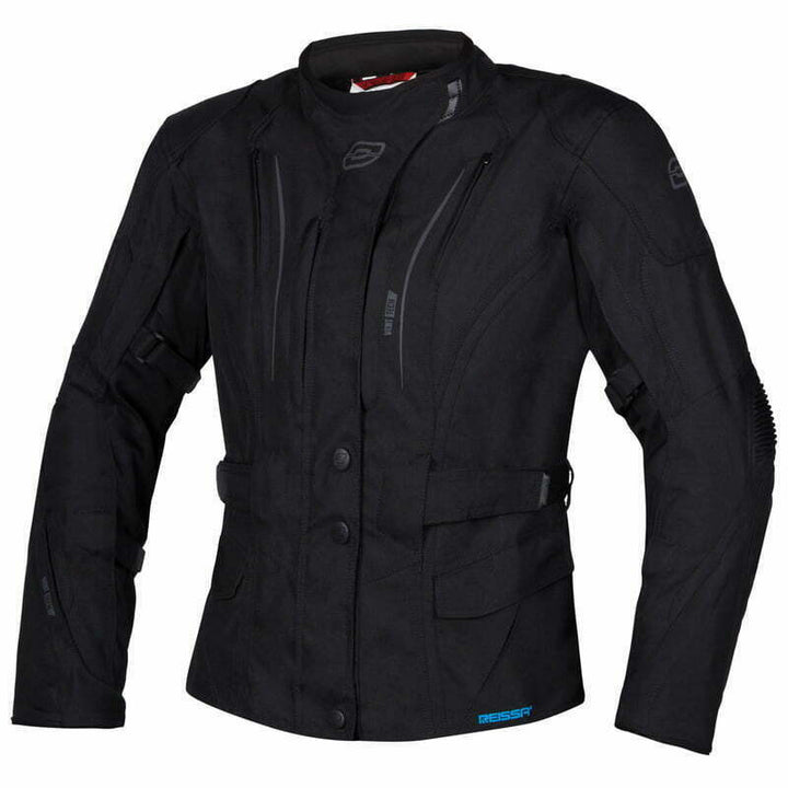 Motorcycle Touring jacket for women has a waterproof, removable Reissa® membrane that protects against wind and rain. It has eight valves front and two rear. It has CE level 1 elbow and shoulder cover and a pocket on the back where you can add a protection.