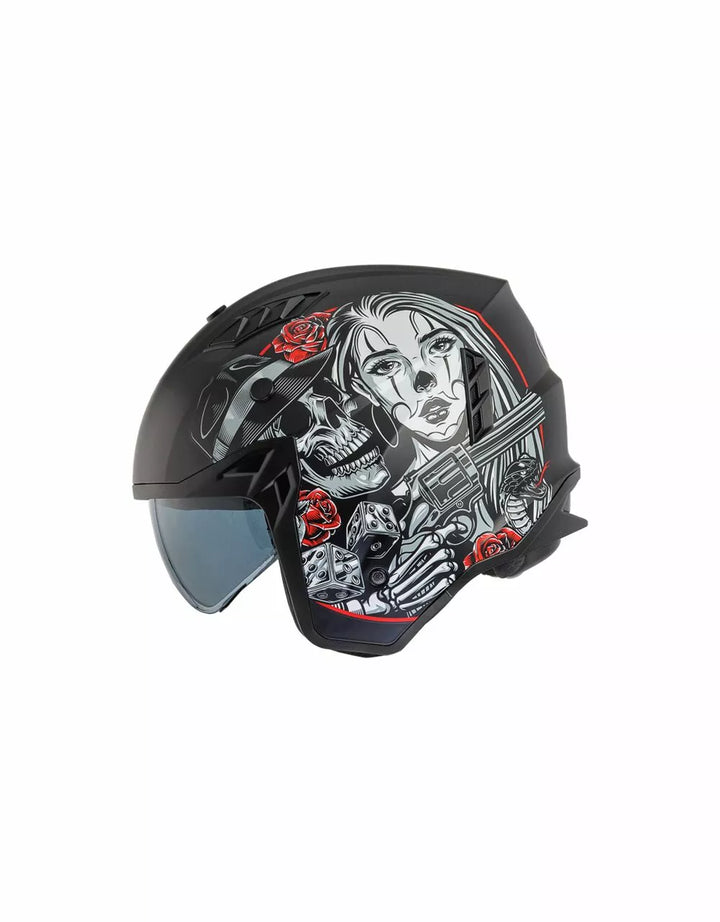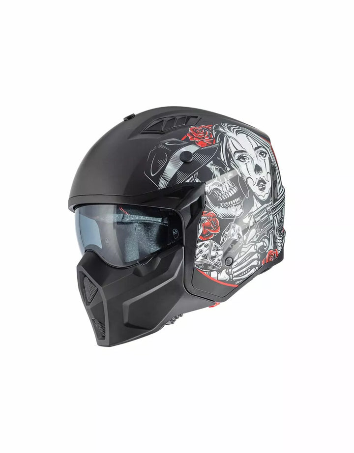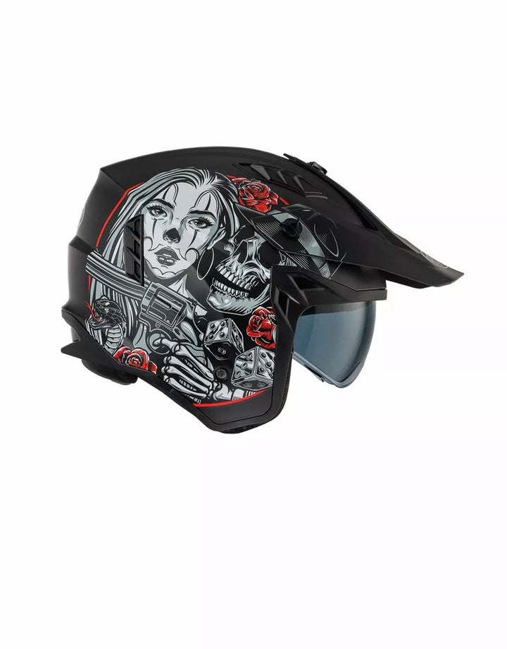 Thermoplastic Outer Construction is Lightweight and Inner Construction is Made of EPS Materials with Varying Density Depending on the Area to Ensure Impact Response., Features Removable Chin Section to Turn This Full-Face Helmet to a Jet Helmet. , Visor is injection Molded Transparent Polycarbonate and Has Anti-Scratch Treatment. , Internal Visor Works Like Sunglasses and Can Be Raised Inside The Shell., Ventilation System Has Two Air Intakes On The Upper Part of the Shell and Two Extractors on the Back., Positioning of the interior has been designed to leave View Wide and Feeling of Movement. , Interiors are Removable, Washable and Made Hypoallergenic by the Sanitized Treatment.