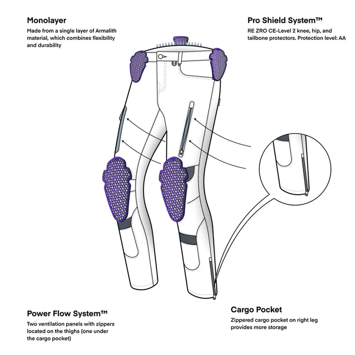 • CE-Level 2 Approved Re Zro® protection at knees and hips