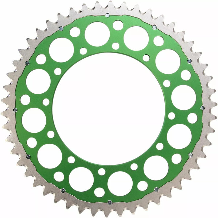 Inner Ring is the Same High Strength Ultralight ル 7075 T-6 Aluminum Used for the Standard Renthal Sprocket, Outer Ring is Electro-Less Nickel Coated Steel for Ultimate Durability and is Designed With The Minimum AMOUNT OF MATERIAL TO 200 ᄚ Ceep Weight Down, The Out Ring Ring Rim This Interference Fit Combined With The Wave Pattern Ensures A Permanent Bond For The Life of the Chainwheel, The Flat Socket Head Head Additional Strength To The Chainwheel During Side Impacts and Eliminates Contact Mud Mud Groove Dirt Build Upand Reduce Chainwheel Wear and Weight, Will Outlast A Standard All Aluminum Sprock By 3 Times, Yet Is Much Lighter Than An All Steel Reaj