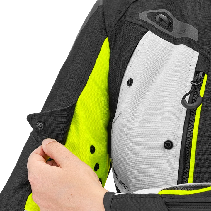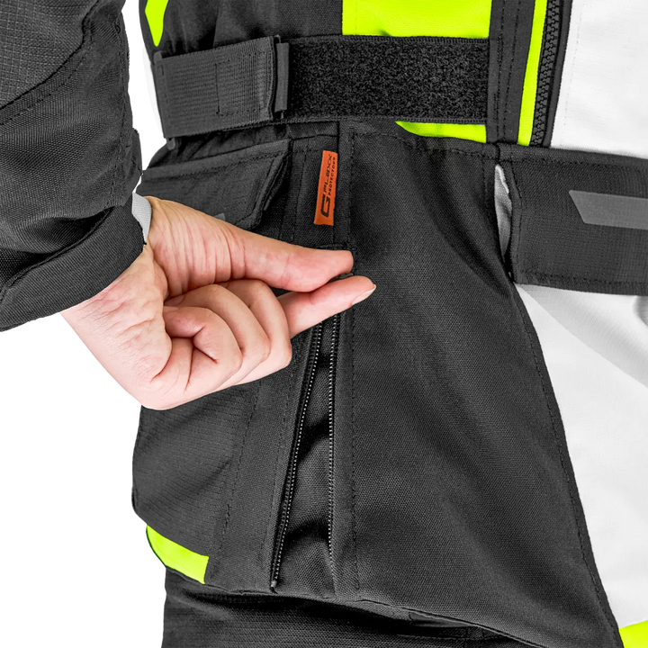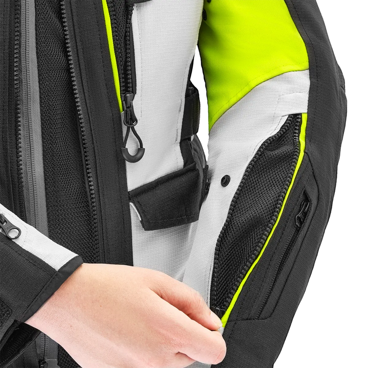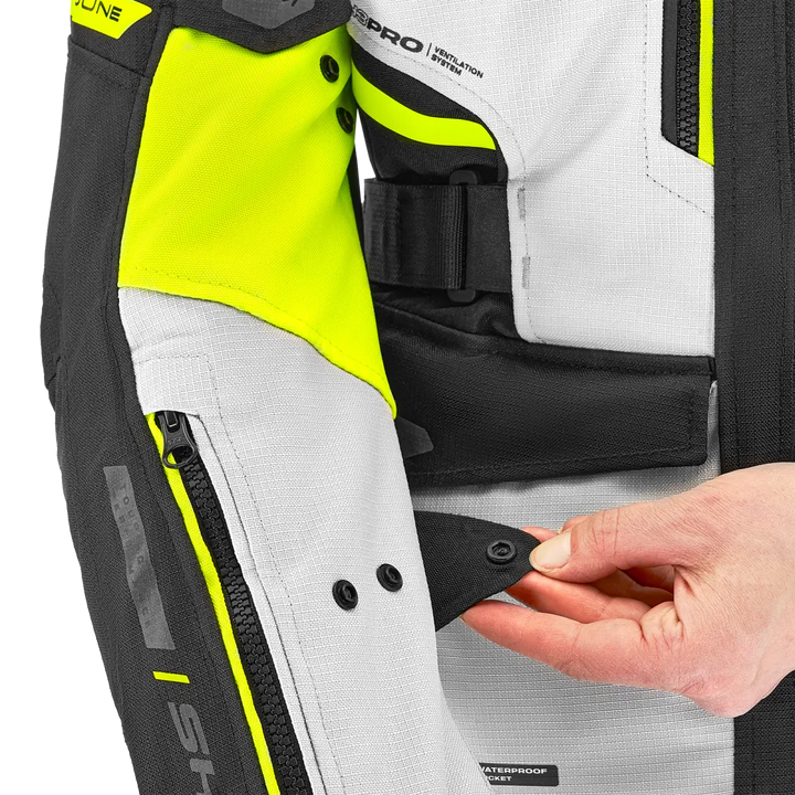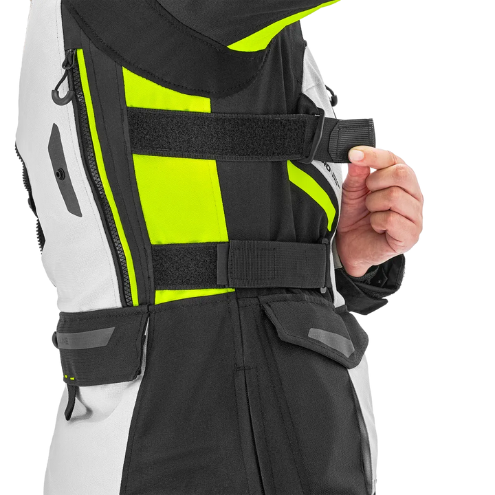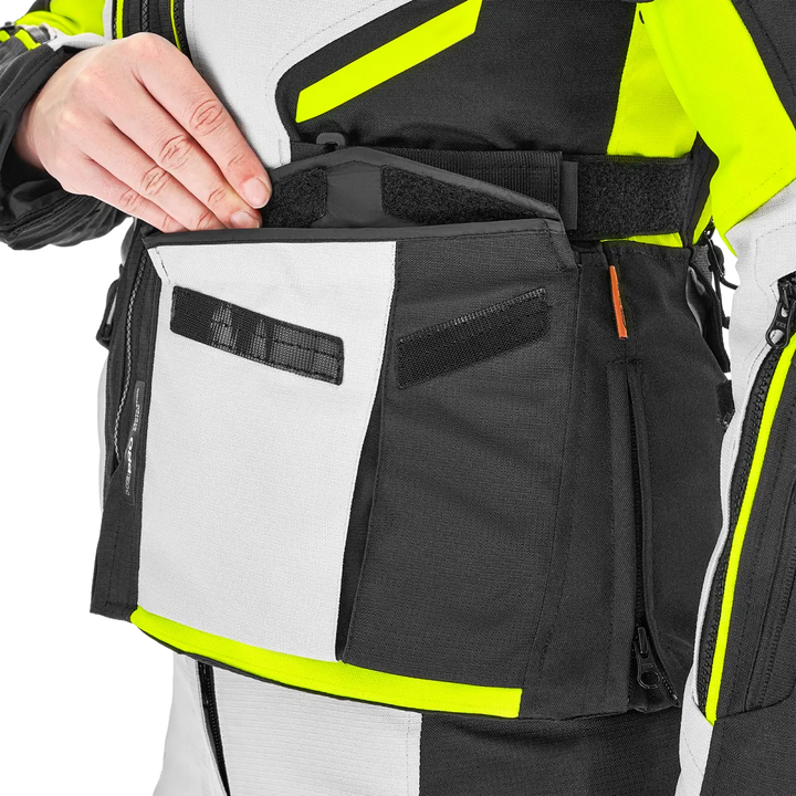 With Lady Fit-Design, stretch panels and well thought out adjustment at the waist, bust, upper arms and wrists, sits Dune Lady as it should. It follows your body - not the other way around. An extra high collar with soft neoprene provides comfort even on long journeys, and the integrated zippers let you pair the jacket with Dune Lady pants for a complete touring outfit.