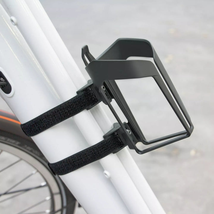 The AnyWhere Universal Bottle Cage Lives Up To Its Name. It can be mounted anywhere on the bike frame, even where there are no mounting holes., The velocage bottle holder and straps up to 80 mm are included., Made of high-quality plastic., For All Common bicycle bottles.