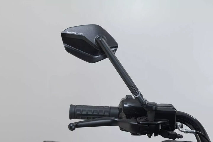 SW-Motech Manufactures The Adjustable Mirrors In A Modern and Flat Design From High-Quality Forged and Black Anodised Aluminum. , The Mirror Arms Consist of Continuously Adjustable Elements and Can Each Be Extended by 30 Millimetres. This Allows the Height and Length of the Mirrors to Be Adjusted to the Requirements of the Respective Pilot., This Sport Mirror Set has a long mirror arm. Mirror Arm Length: 182 mm., Modern and Flat Edge Design., Partial Areas and Functional Surfaces milled., 4 Different Adjustment Possibens for Best Possible Alignment., Stepless Rotation and Includes of the Mirror Arm. Mounting on Existing Mirror Connection., Scope of Delivery: 1 x Mirror Set Sport, 1 x Mounting Material for Mirror Set & Mounting Instructions.