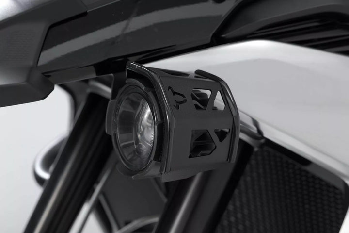 The Powder-Coated Steel Protector Protects the Housing of the Sw-Motech Evo Lights While Giving Your Bike An Adventurous Look., It is attached Directly to the lights with only two screws., Compatible with evatech, from and fog light Simple Attachment of the Guard to the Screw Connection of the Lights, Made of Corrosion Resistant and Powder-Coated Steel, With Laser-Etthed SW-Motech Logo