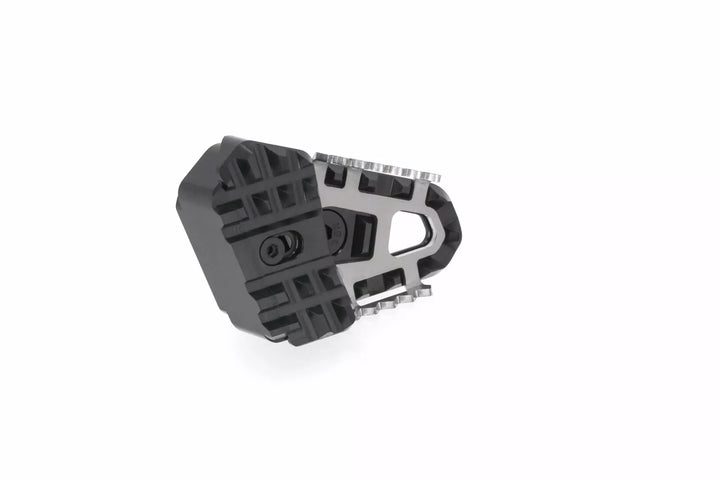 The Extension for Brake Pedal is Ideal for Off-Roading: It Enhances The Original Brake Arm Treat and Guarantees A Safe, controlled use of the brake. , When Standing, The Angle of Your Knee Changes, So Your Foot Cannot Put As Much Pressure on the Smaller pedal. , The extension of husbands it possible for the contact surface to be both broader and higher., Thanks to the raised contact surface, your foot is angled more shals, so it can reach and control the brake arm more easy, even when standing. , That Means the Extension for Brake Pedal Offers Better Safety and Better Control Over the Realar Brake., When Off-Roading, You Often Alternate Between Seated and Standing Positions. , In Addition to the Raised Surface, The Extension for Brake Pedal Features a Widacts Surface. , This is equipped with a ridged Surface, so it offers improved grip when the arm Surface is dirty or wet., Enhances the original Brake Pedal, Raised and wider Surface, Improved Grip Thanks to Ridged Surface ヨ Even Surfae Vet and Dirty