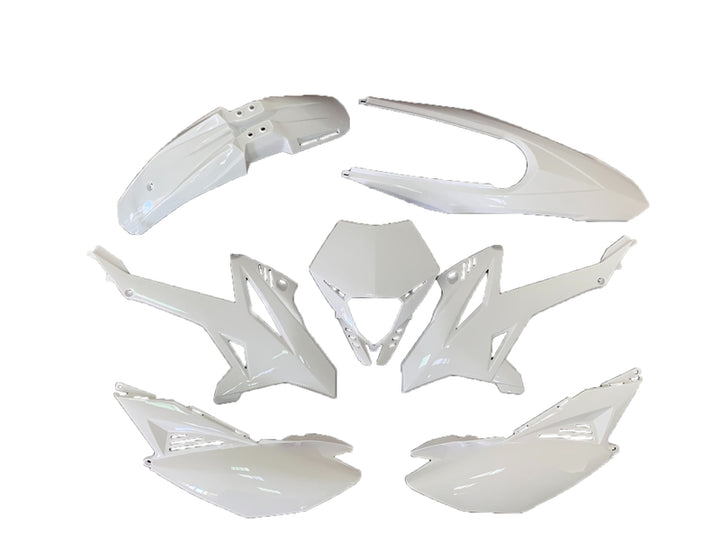 Fender and Cover Oem Kit Composed of 7 Plastic Shells. Black or White. 2 Front Side Fenders2 Rear Side Fenders1 Front Wheel Fender1 Rear Wheel Fender1 Front Panel Color: White