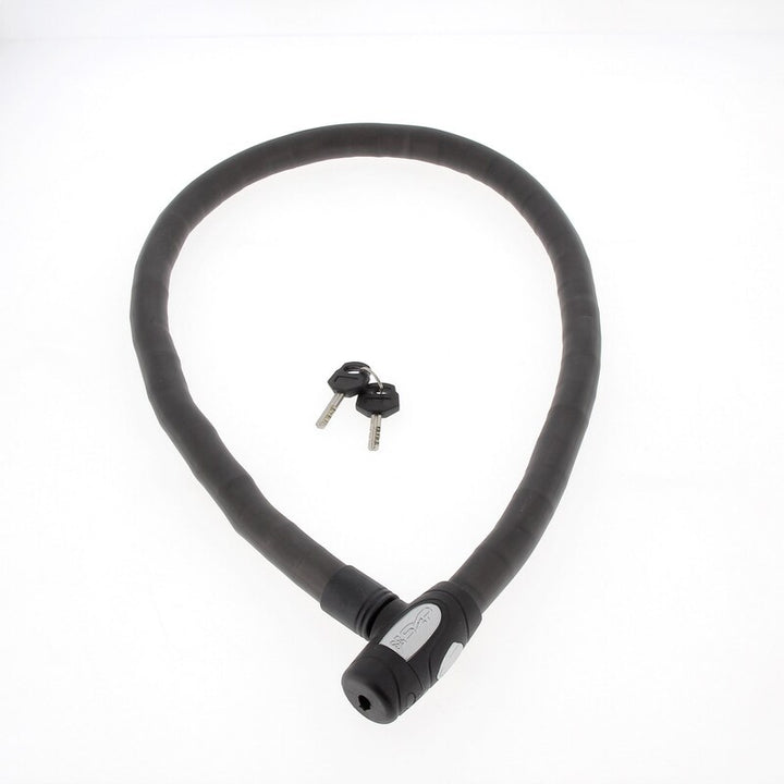 VECTOR Cable Lock is a practical and strong locking solution, perfect for securing motorcycles, bicycles, and other vehicles. With a 25 mm thick, articulated steel cable, this lock offers high flexibility and resistance to cutting and wear.