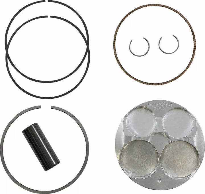 R&D Developed to Provide Dyno test Power Gains, asymmetric Skirt Design for improved wear and even loading on Major Thrust Skirt, Precision Fit Ring; Custom-lapped Compression Ring for Improved Power, 100% Billet Machined for Superior Strength-to-Weight Ratio and Optimized Fit, High Compression (14: 1 For 450cc, 14.5: 1 For 250cc) For Maximum Torque and Throttle Response, Dome Air/ Feat Design Improve Flame Flame Flame DLC-Coated Piston Pin Reduces Free and Improves Scuff Resistance, Enhanced Pin Oiling for Improve Lubrication and Reduced Friction, Pressure Seal Groove Reduces Ring Lift and Power Loss, Armorglide ᆴ Skirt Coating, Impriction for rings, pin, and circlips