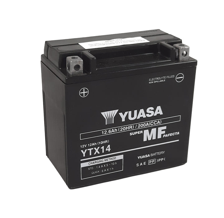 Yuasa YTX14-FA is one High-performing AGM battery, factory activated and ready to be used directly. That is ideal for motorcycles, snowmobiles, quad bikes and other vehicles that requires Reliable starting power, long service life and minimal maintenance.