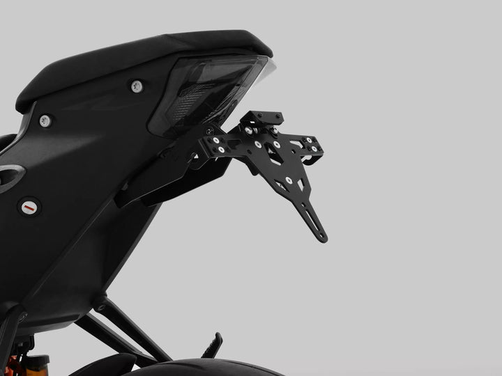 The License Plate Holder is Extremely Durable and Weather Proof., Black Powder Coated. , The License Plate Holder Can Be Used For Any Kind of License Plate (175mm Width)., No Modification of Fairing Required., Stepless Adjustment of Rake Angle., Indicator Support Adjustable in 3 Positions. Plate., Special Indicator Light Mounts (Sold Separately) Required for Stock Indicator Lights., Kit Includes: 1 License Plate Holder Incl. Mounting Kit., LED License Plate Light "e Approved" Incl. Support., Back Light With Support.