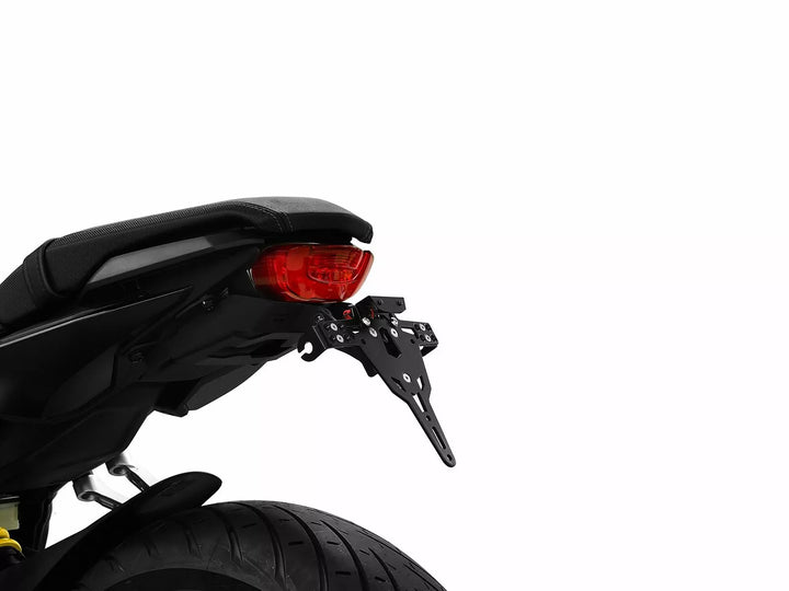 The License Plate Holder is Extremely Durable and Weather Proof., Black Powder Coated. , The License Plate Holder Can Be Used For Any Kind of License Plate (175mm Width)., No Modification of Fairing Required., Stepless Adjustment of Rake Angle., Indicator Support Adjustable in 3 Positions. Plate., Special Indicator Light Mounts (Sold Separately) Required for Stock Indicator Lights., Kit Includes: 1 License Plate Holder Incl. Mounting Kit., LED License Plate Light "e Approved" Incl. Support., Back Light With Support.