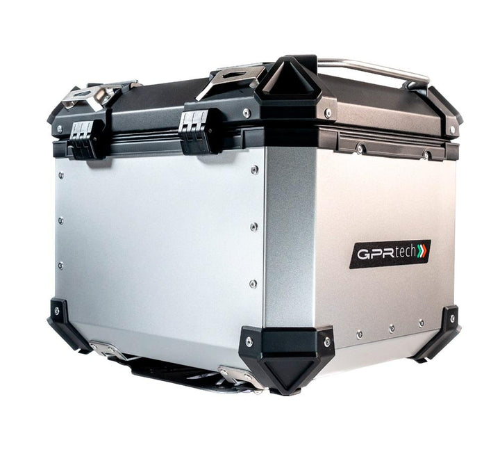 A GPR Tech Top Case Alpi-Tech 35 hadnagy alumíniumban, ezüst színű, univerzális lemezen, a kapacitás 35 Lt.
