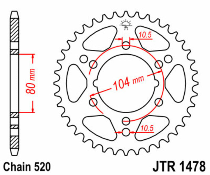 A JT Sprock acél szabványának hátsó lengése 1478 - 520 JTR1478.42