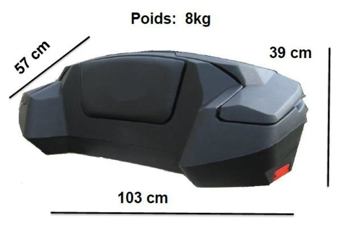 Erős nagy kapacitású tároló doboz. Ha szüksége van egy rakománydobozra extra tárolóhelyiséggel, ez a doboz az Ön számára. Könnyedén fel van szerelve a «u» csavar rögzítő készlettel (tartozék). Kanadában készített szín: fekete heigth_cm: 40,0 length_cm: 100.0 buggage_capacity_l: 109 width_cm: 58,0