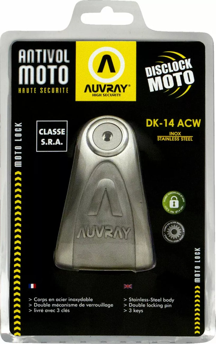Tárcsa zár, fűrészelés és támadás igazolás , rozsdamentes acél test, dupla reteszelő csap Ø 14 mm, 3 lapos őrölt gomb