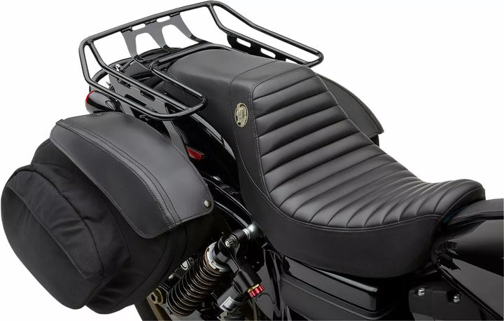 Az állvány teteje körülbelül az ülés tetejével, és minden állvány hátul van, vannak helyek, ahol a bungee -zsinórokat vagy a szerelőszíjakat rögzíthetik, így nem kell többé megkarcolnia a kerékpár Fen S Fenderét, amikor a rakományt rögzíti, rögzítő hardvereket rögzít. A Harley-Davidson szerelőkészlet, ha az utólagos ülés nem nyereg, vagy a Lucky Daves lép fel, akkor nézzen meg a nyílás méréseire, hogy az állvány illeszkedjen a kerékpár ülés körül.